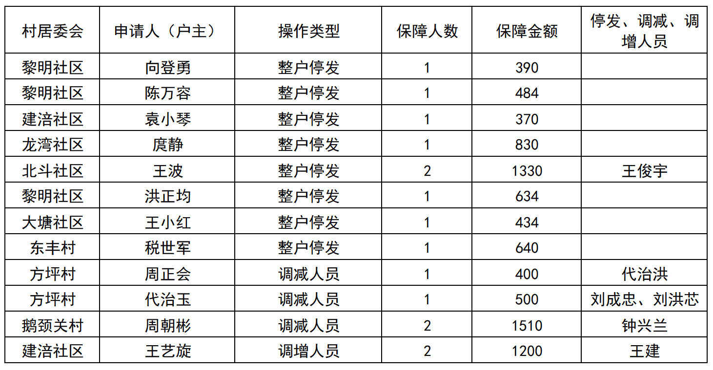 涪陵区荔枝街道2025年9月低保人员停发、调减、调增公示