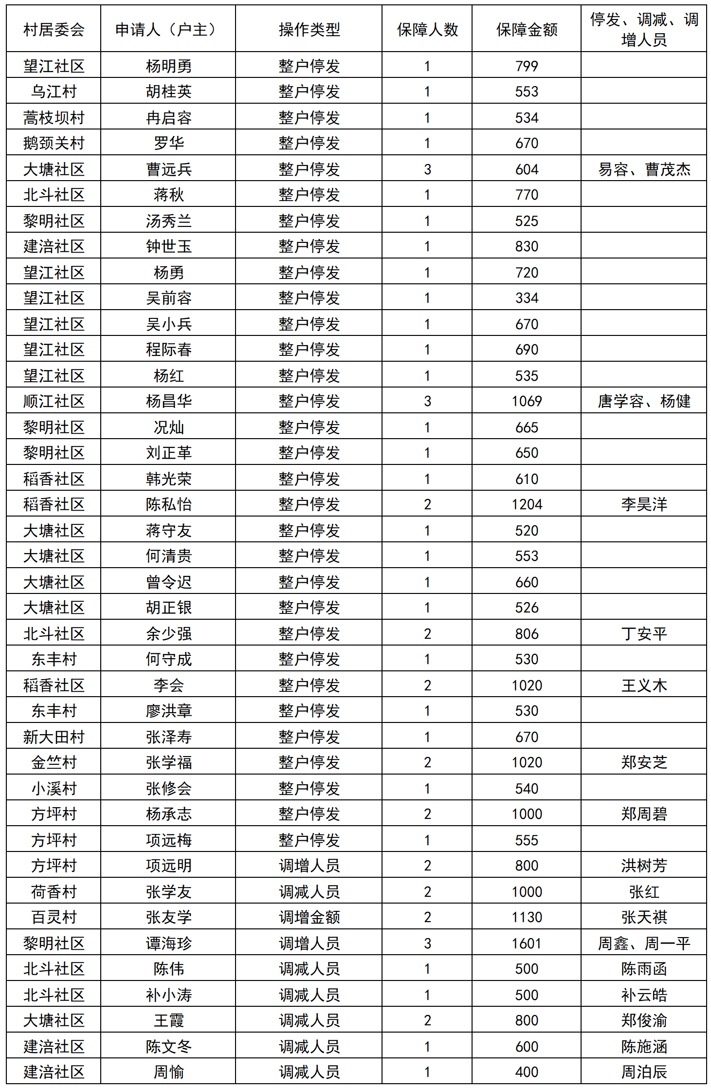 涪陵区荔枝街道2025年10月低保人员停发、调减、调增公示