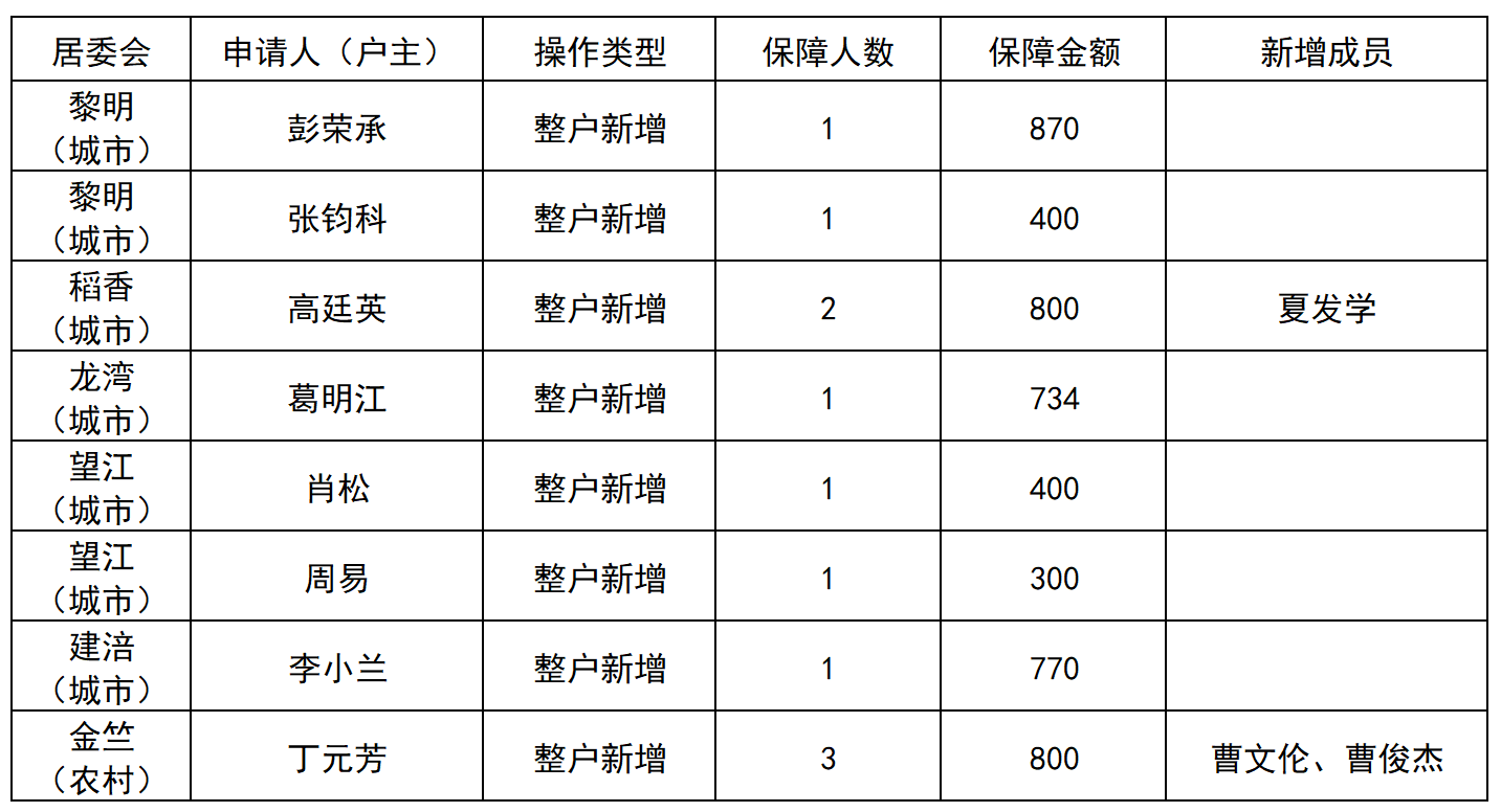 涪陵区荔枝街道2025年10月低保人员新增公示