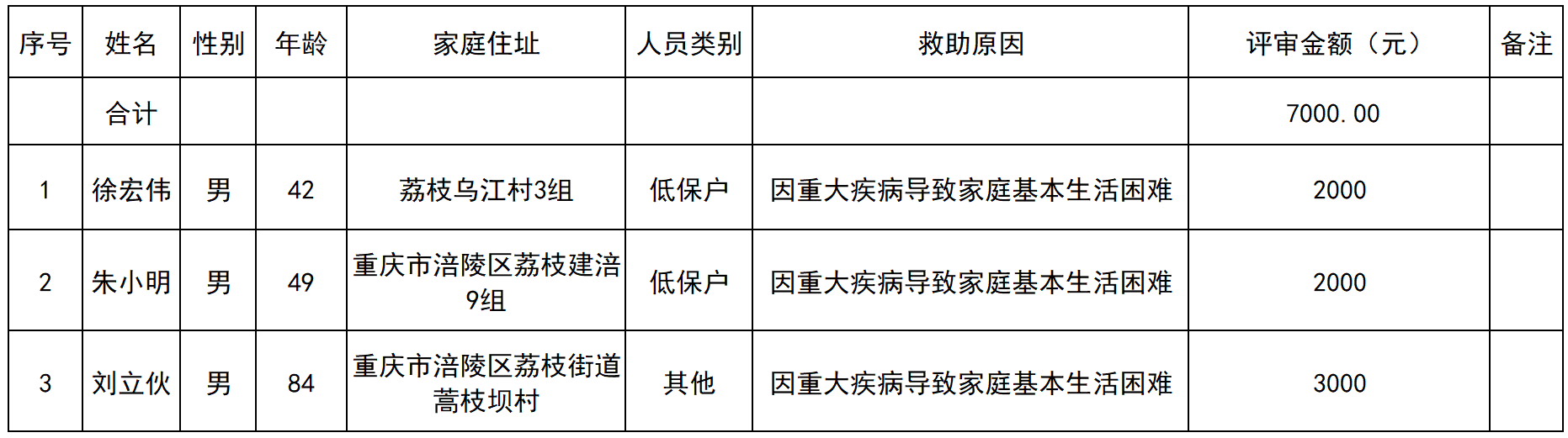 涪陵区荔枝街道2025年10月临时困难救助台账