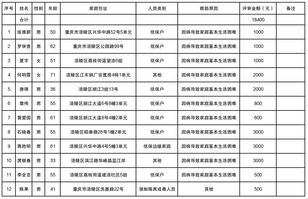 涪陵区荔枝街道2025年12月临时困难救助台账