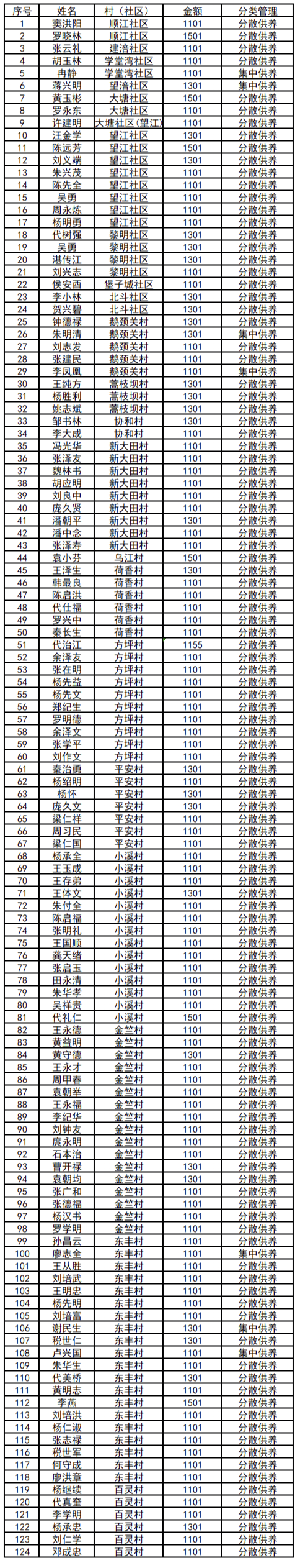 涪陵区荔枝街道2025年12月特困人员名单