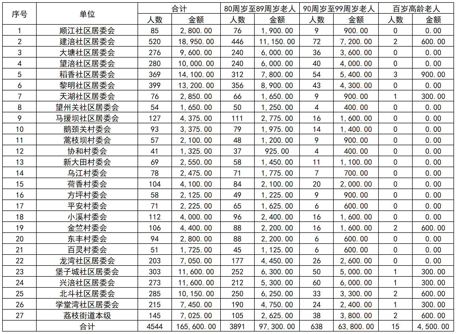 涪陵区荔枝街道高龄津贴发放情况(2025年8月)
