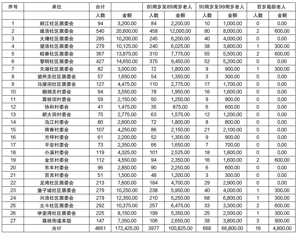 涪陵区荔枝街道高龄津贴发放情况(2026年1月)