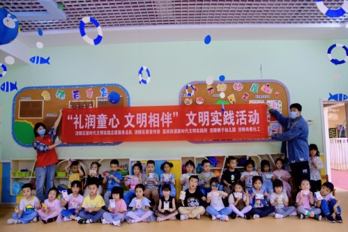 为进一步培育和践行文明习惯规范,大力倡导和践行“涪风十礼”,提高儿童的文明素养和讲礼意识。5月18日,在荔枝街道马援坝社区娇子幼儿园开展了“礼润童心 文明相伴”文明实践活动,40名儿童参与其中。本次活动由涪陵区新时代文明实践中心、涪陵区委宣传部主办,荔枝街道新时代文明实践所、荔枝街道马援坝社区新时代文明实践站、娇子幼儿园、涪陵尚善社工联合承办。