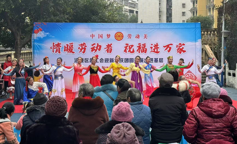 为丰富辖区居民的精神文化生活,感受新年的欢乐气氛。12月30日下午,涪陵区总工会、含笑文化艺术团、工贸职业学院、望江社区新时代文明实践站联合举办了“迎新年 庆团圆”文艺演出活动,此次活动共吸引200余人观看。