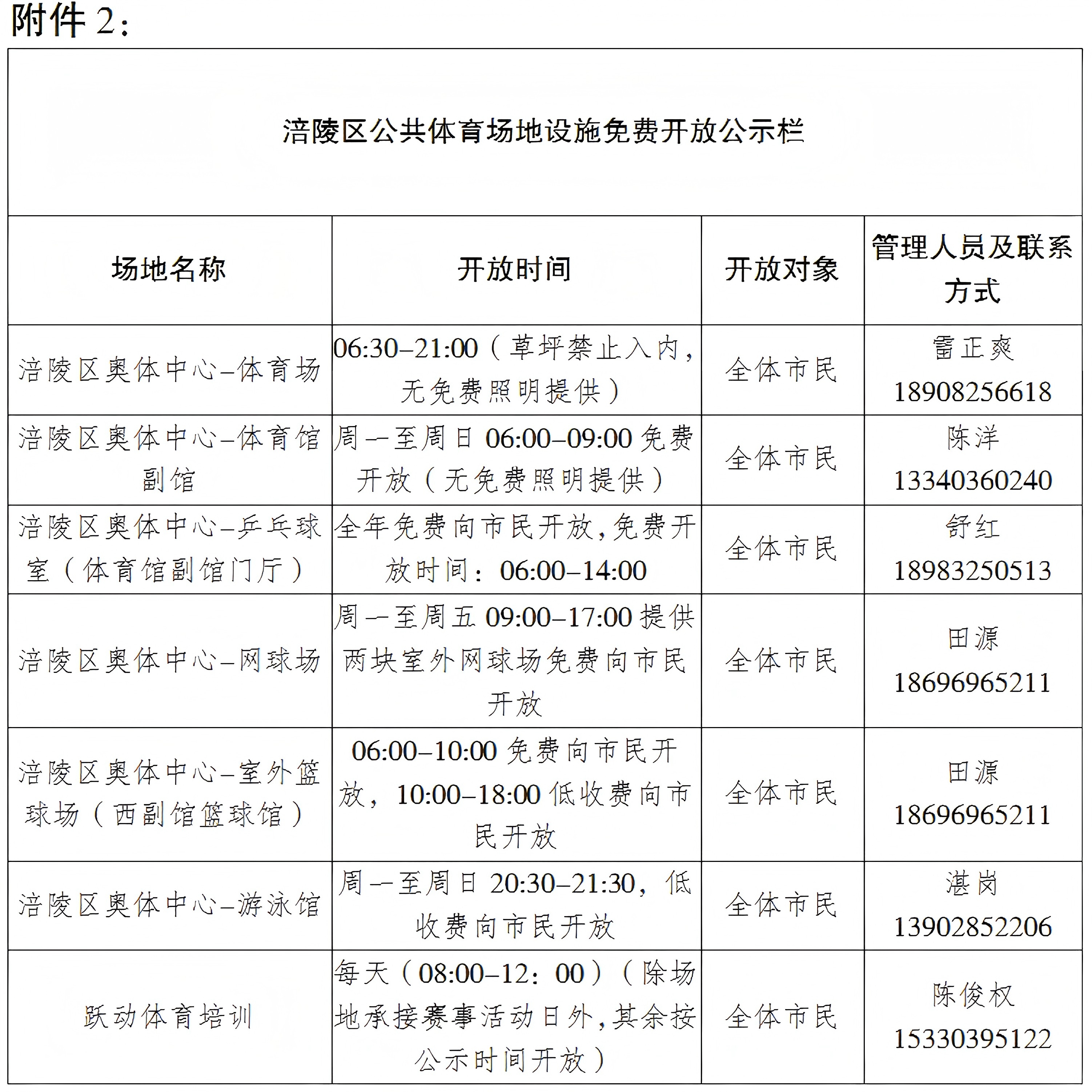 (三)奥体中心场地、跃动足球场地按附件2公示的场地、时间开放。