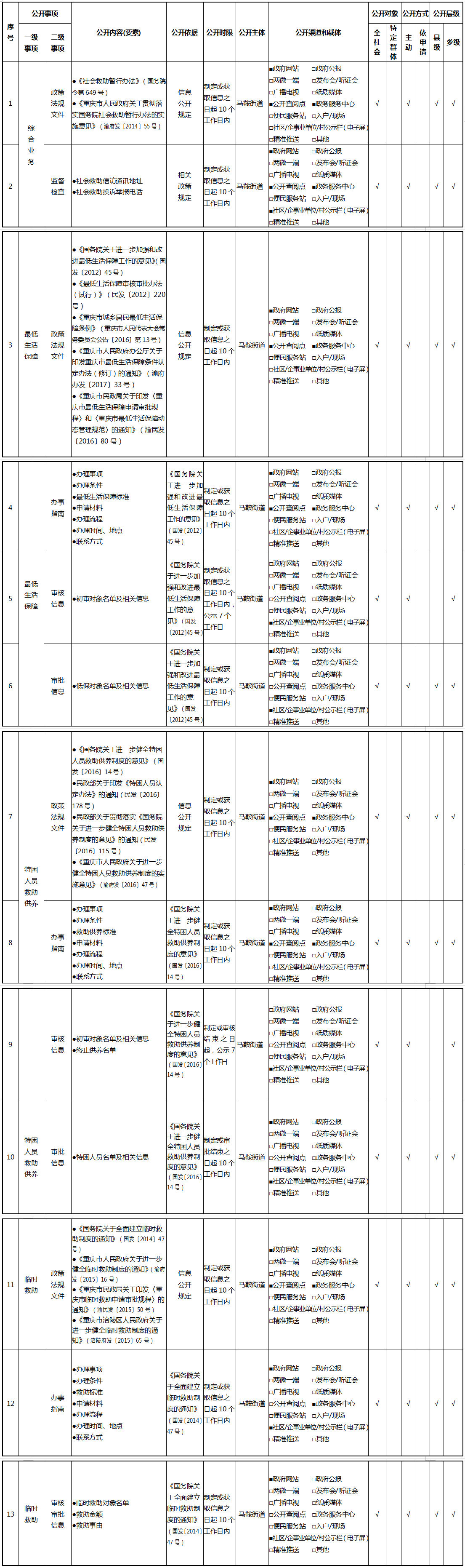 重庆市涪陵区马鞍街道社会救助领域基层政务公开标准目录(2025年版)