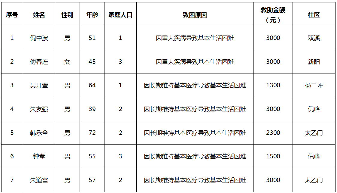 涪陵区马鞍街道2025年11月临时困难救助台账