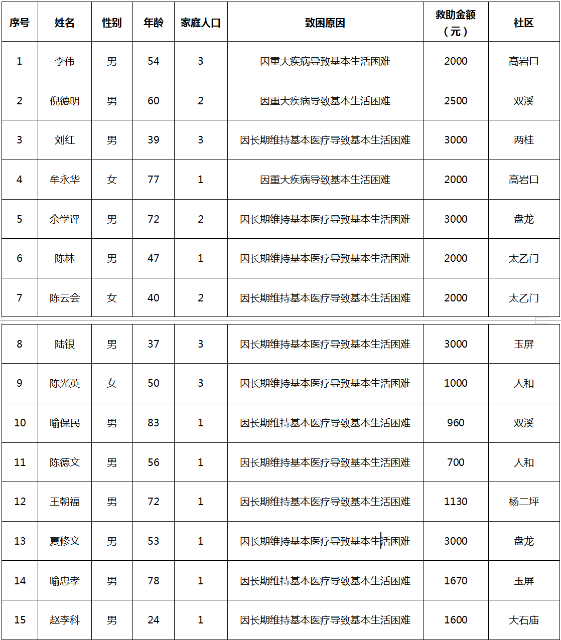 涪陵区马鞍街道2025年12月临时困难救助台账