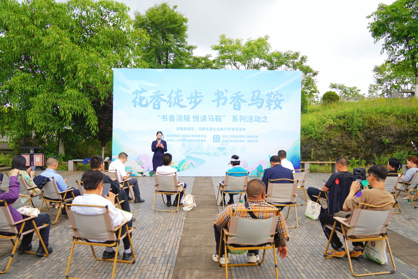 4月23日是第29个“世界读书日”,当天,马鞍街道举行“书香涪陵,悦读马鞍”系列活动,组织来自涪陵高新区和马鞍街道的众多企业负责人到户外读书,倡导全民阅读。