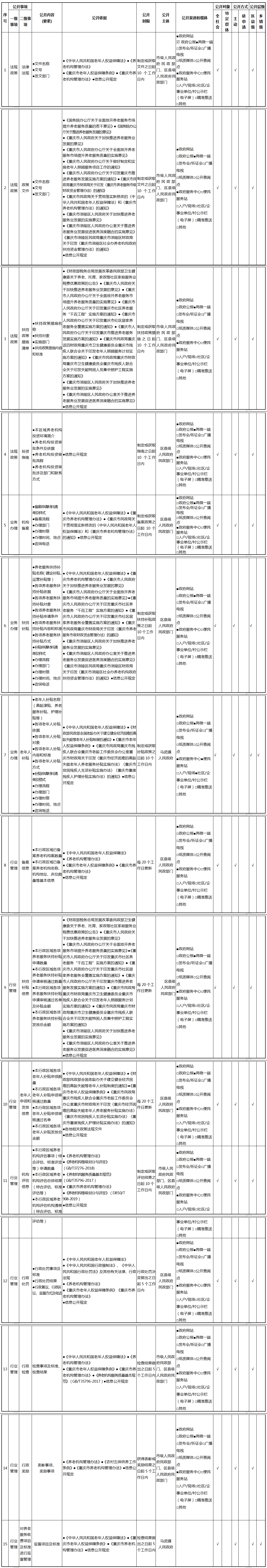 重庆市涪陵区马武镇养老服务领域基层政务公开标准目录(2026年版)