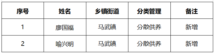 涪陵区马武镇2025年10月特困人员新增、注销公示