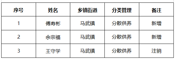涪陵区马武镇2025年11月特困人员新增、注销公示