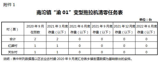 1.南沱镇“渝01”变型拖拉机清零任务表