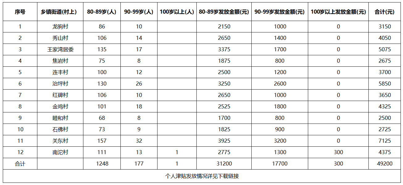 涪陵区南沱镇高龄津贴发放情况(2025年7月)