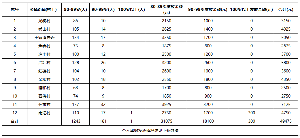 涪陵区南沱镇高龄津贴发放情况(2025年8月)