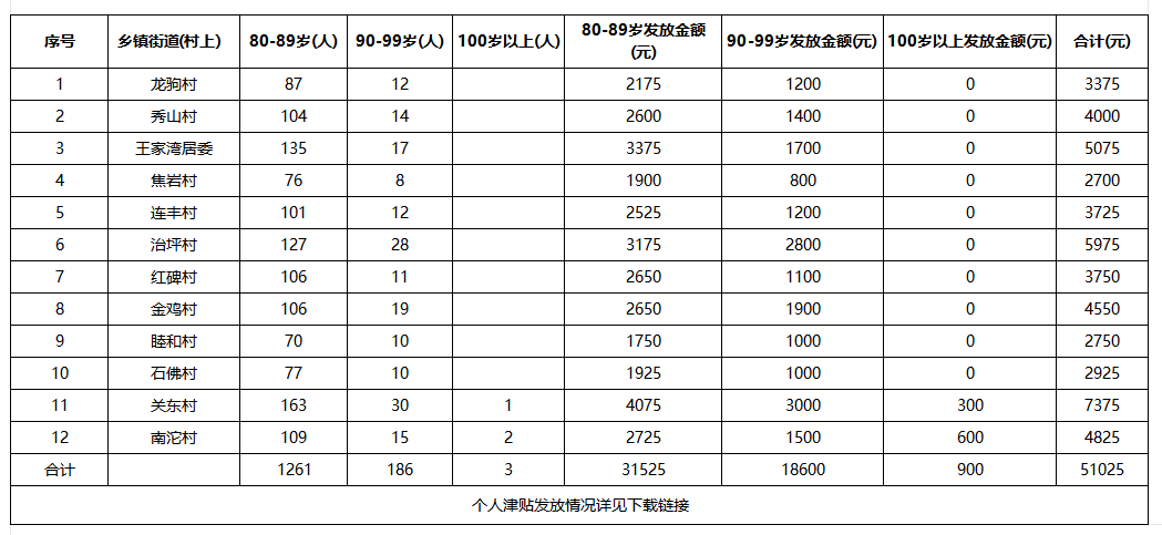 涪陵区南沱镇高龄津贴发放情况(2025年11月)