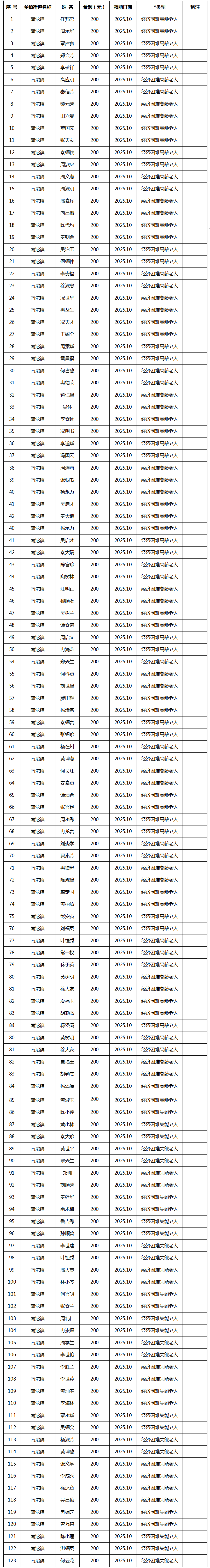 2025年10月涪陵区南沱镇经济困难高龄失能老年人养老服务补贴实发名单