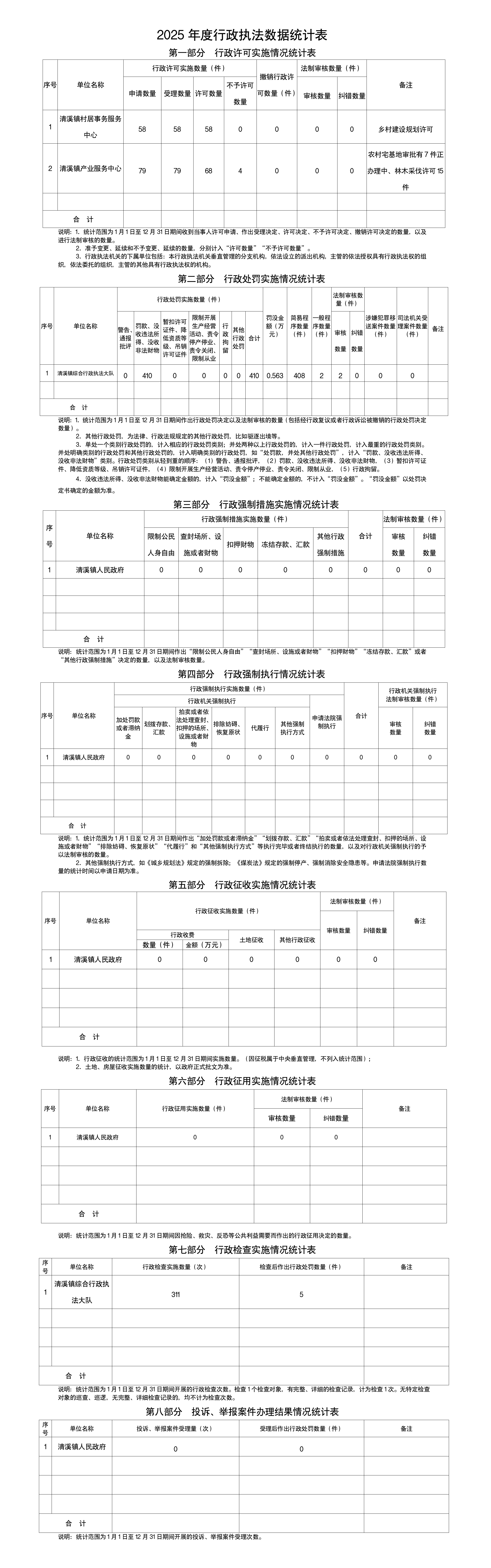 涪陵区清溪镇人民政府2025年度行政执法数据公示
