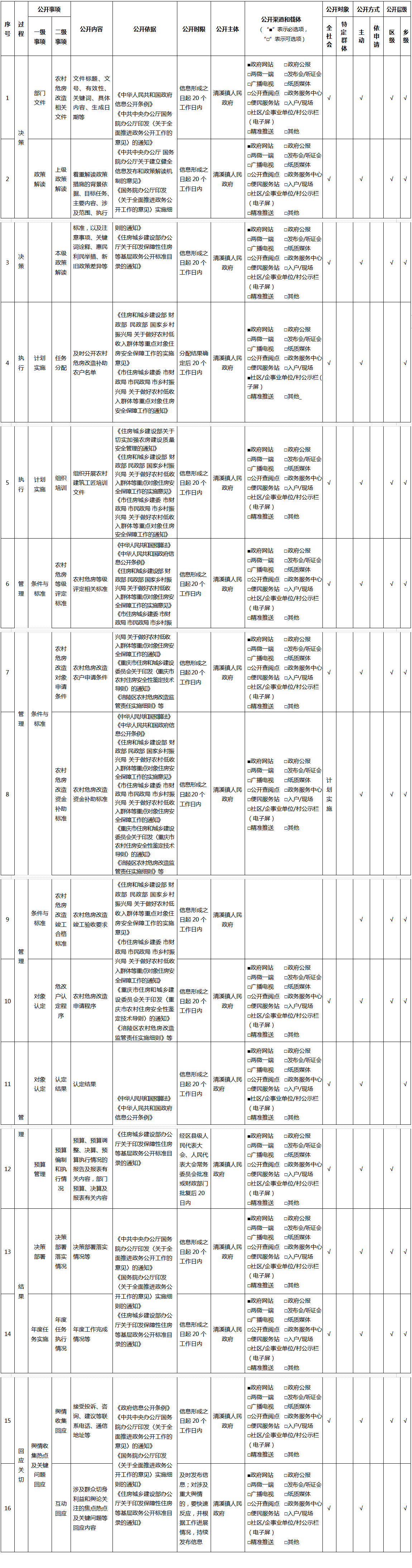 重庆市涪陵区清溪镇人民政府农村危房改造领域基层政务公开标准目录(2026年版)