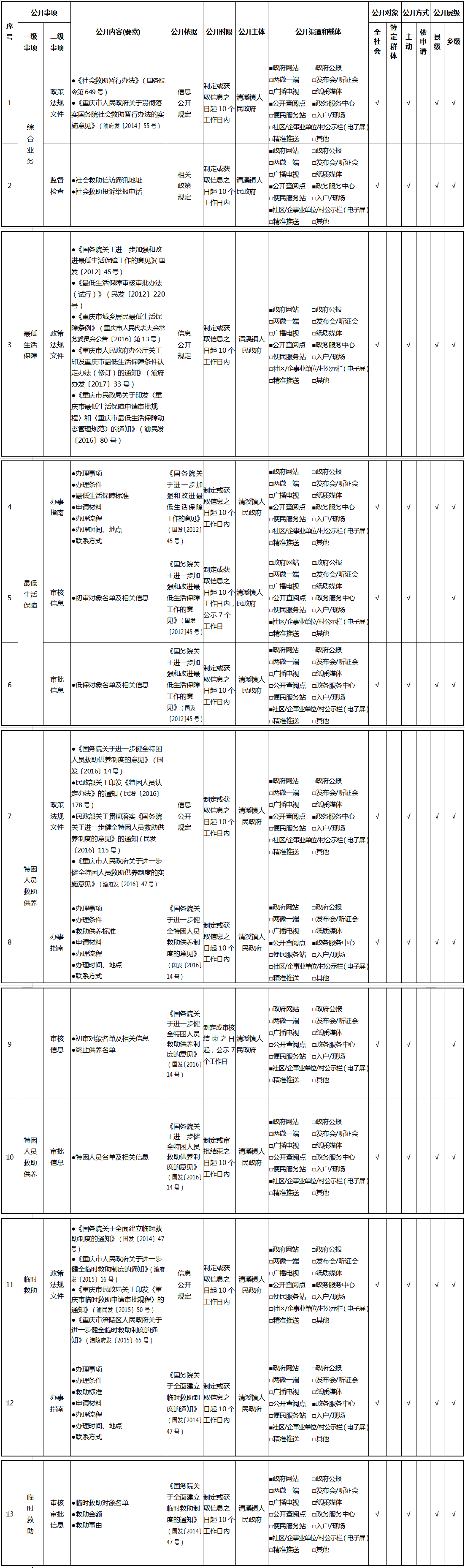 重庆市涪陵区清溪镇人民政府社会救助领域基层政务公开标准目录(2026年版)
