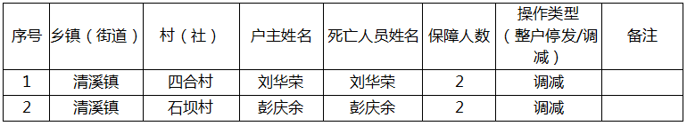 涪陵区清溪镇2024年11月低保人员停发、调减公示