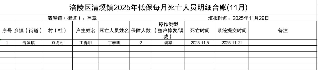 涪陵区清溪镇2025年11月低保人员停发、调减公示