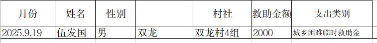 涪陵区清溪镇2025年9月临时困难救助台账