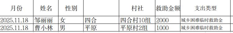 涪陵区清溪镇2025年11月临时困难救助台账