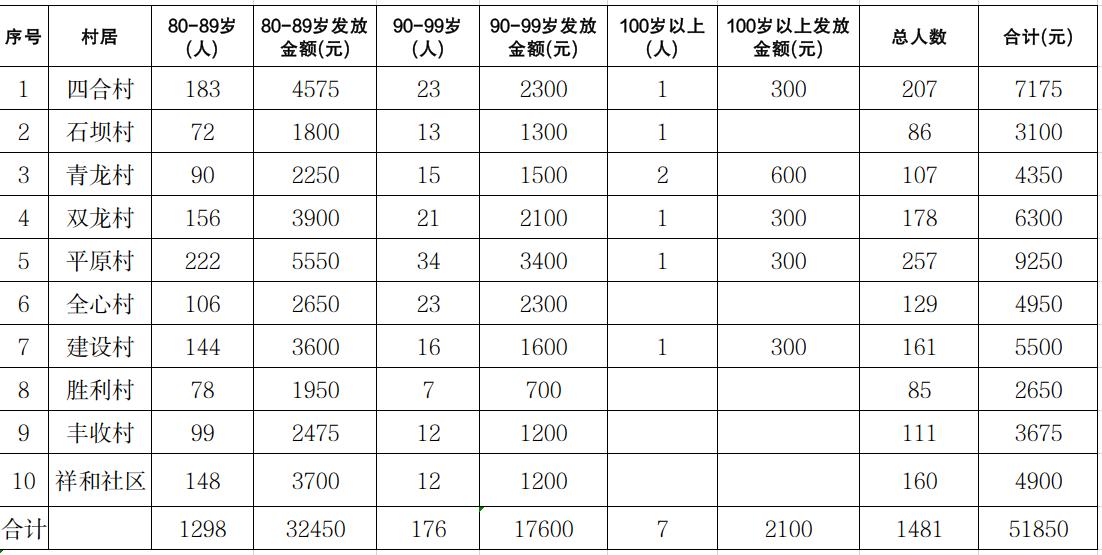 涪陵区清溪镇2025年8月高龄津贴发放金额汇总表