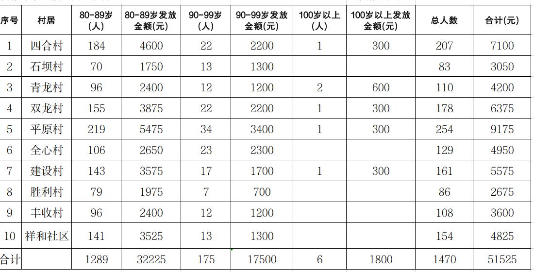 涪陵区清溪镇2025年9月高龄津贴发放金额汇总表