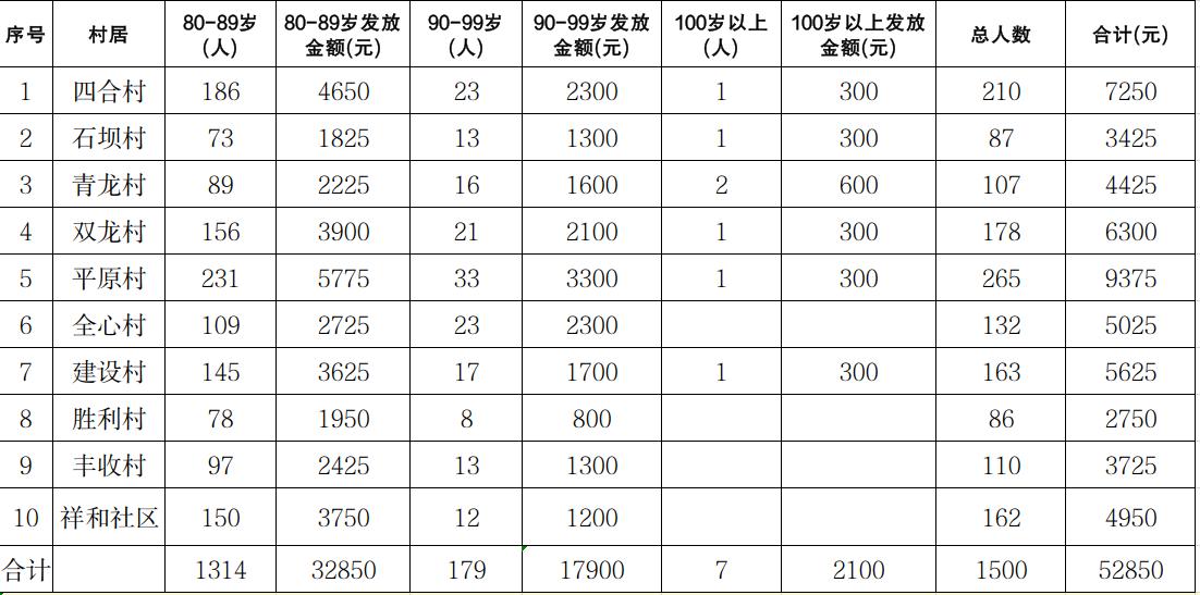 涪陵区清溪镇2025年10月高龄津贴发放金额汇总表