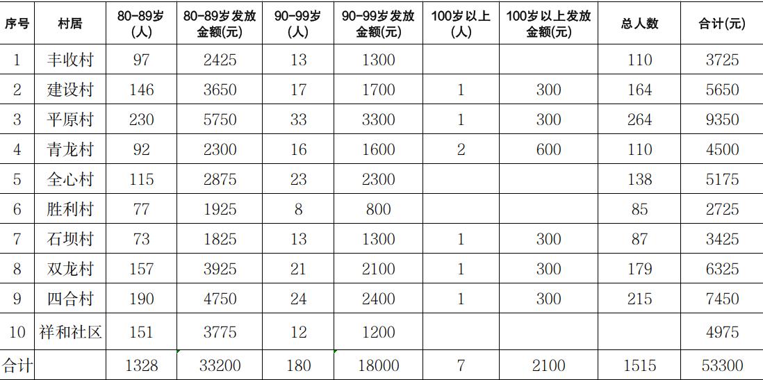 涪陵区清溪镇2025年11月高龄津贴发放金额汇总表