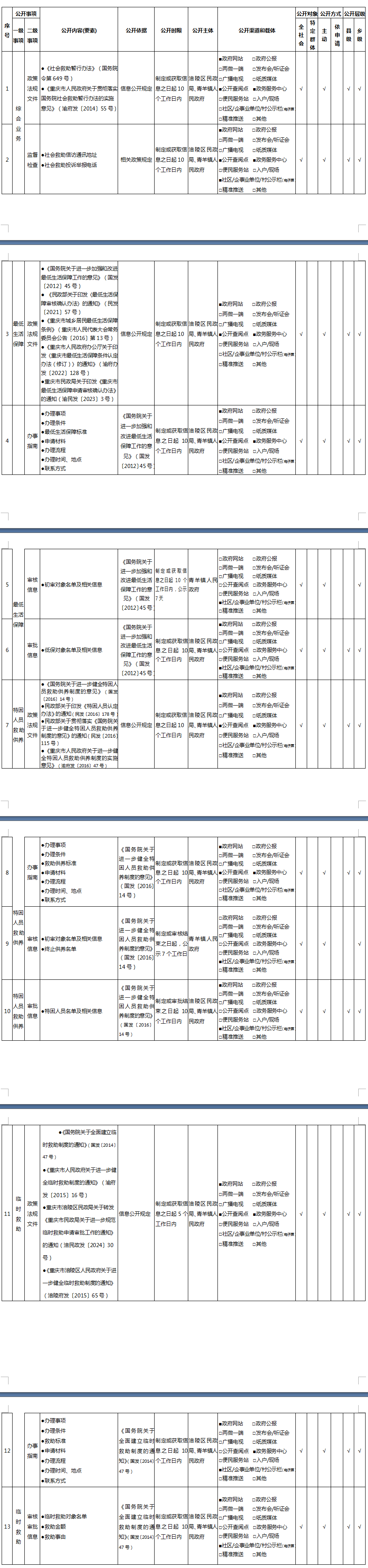 重庆市涪陵区青羊镇社会救助领域基层政务公开标准目录(2026)