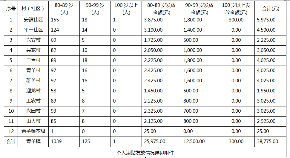 涪陵区青羊镇高龄津贴发放情况(2025年8月)