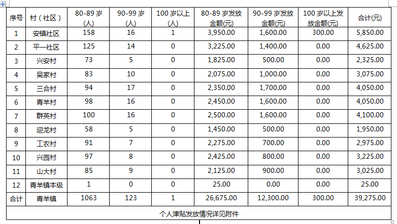 涪陵区青羊镇高龄津贴发放情况(2025年11月)