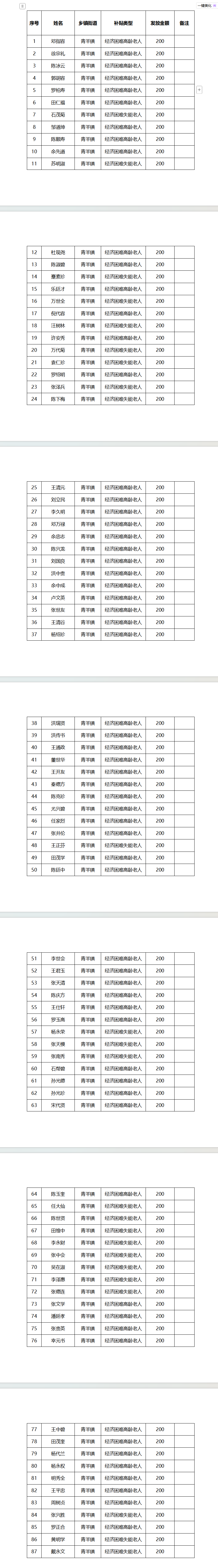 涪陵区青羊镇2026年2月经济困难的高龄失能老年人养老服务补贴发放花名册