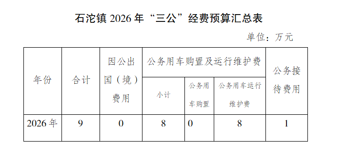 按照市政府、区政府关于推进政府信息公开工作部署和要求,经汇总,2026年一般公共预算“三公”经费支出预算为9万元,其中:因公出国(境)费用0万元,公务用车购置及运行维护费8万元,公务接待费1万元。与2024年预算相比,2024年一般公共预算“三公”经费支出预算减少23万元,其中因公出国(境)费0万元,公务用车运行维护费减少23万元,公务接待费无变化。