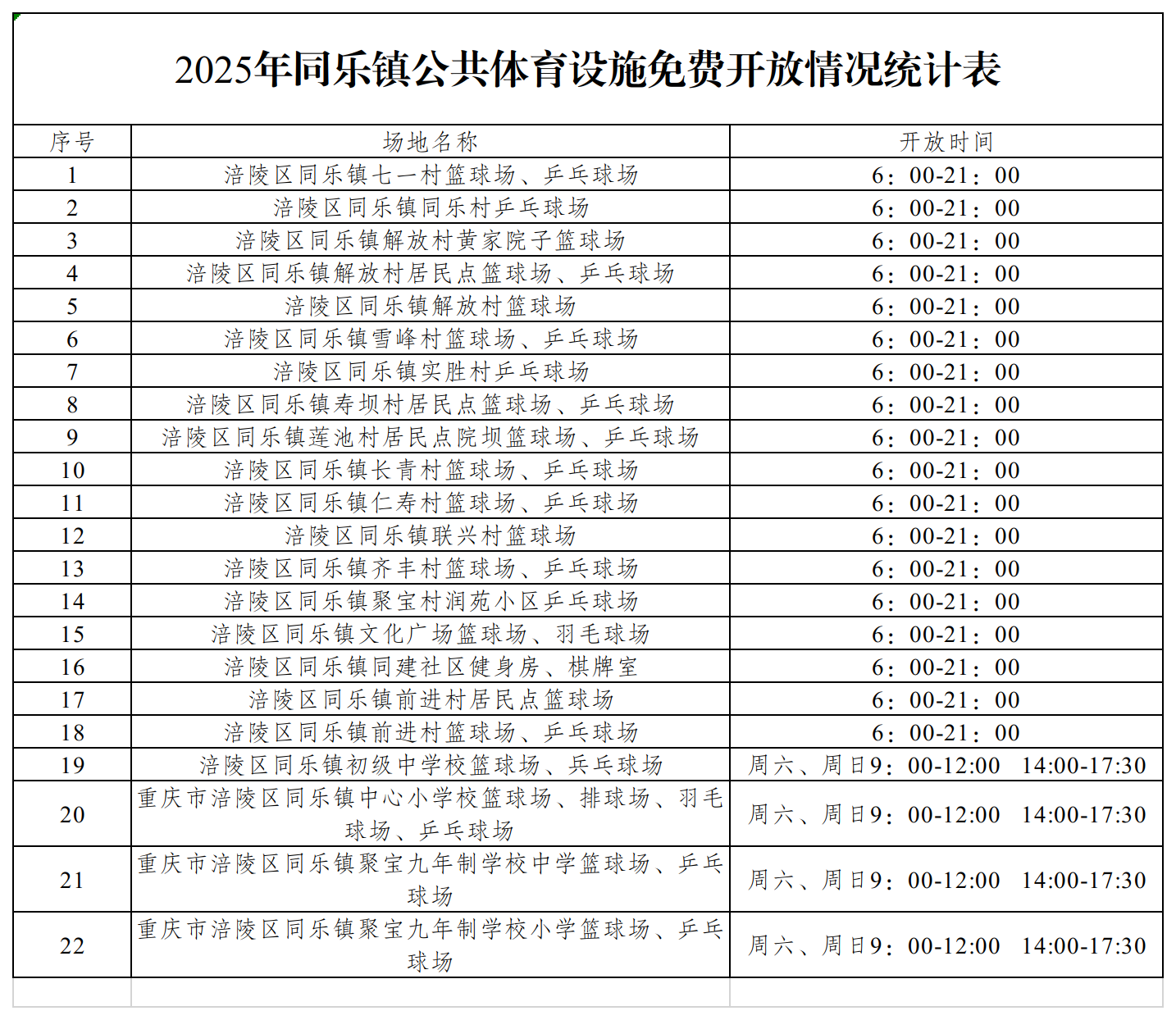 附件:2025年同乐镇公共体育设施免费开放情况统计表
