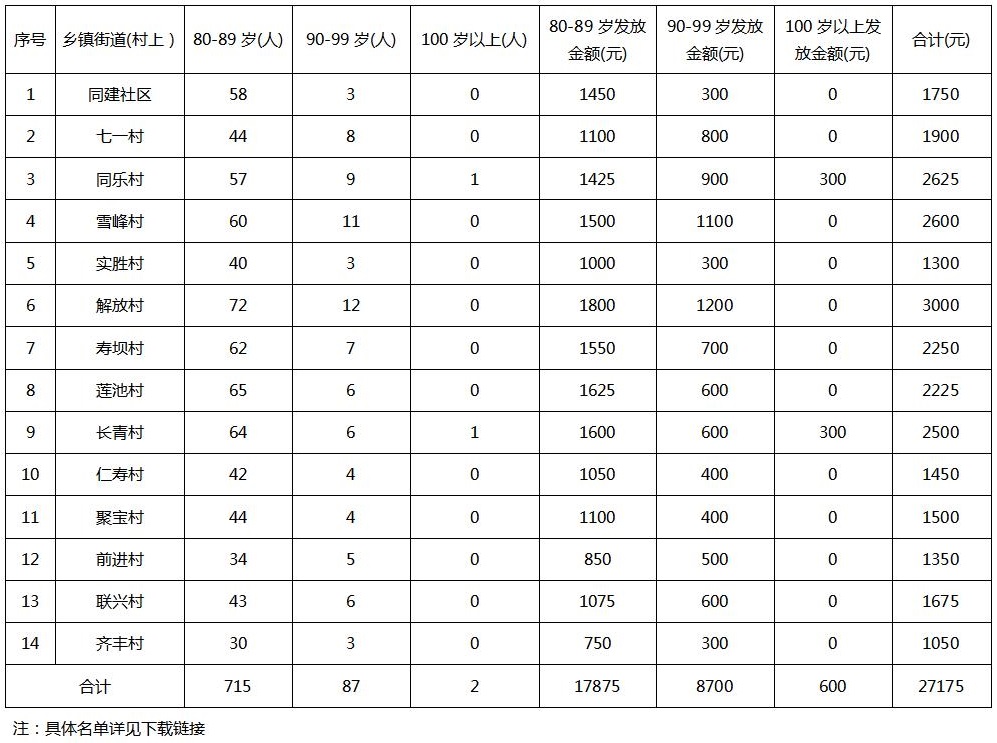 涪陵区同乐镇2022年9月高龄津贴发放金额汇总表