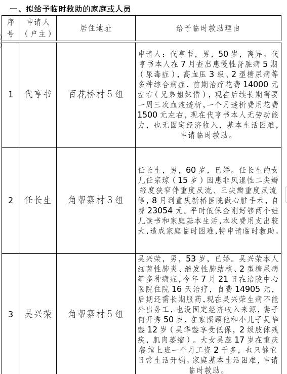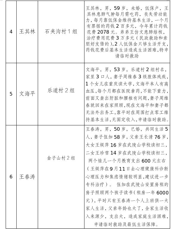 涪陵区武陵山镇2025年9月临时困难救助结果