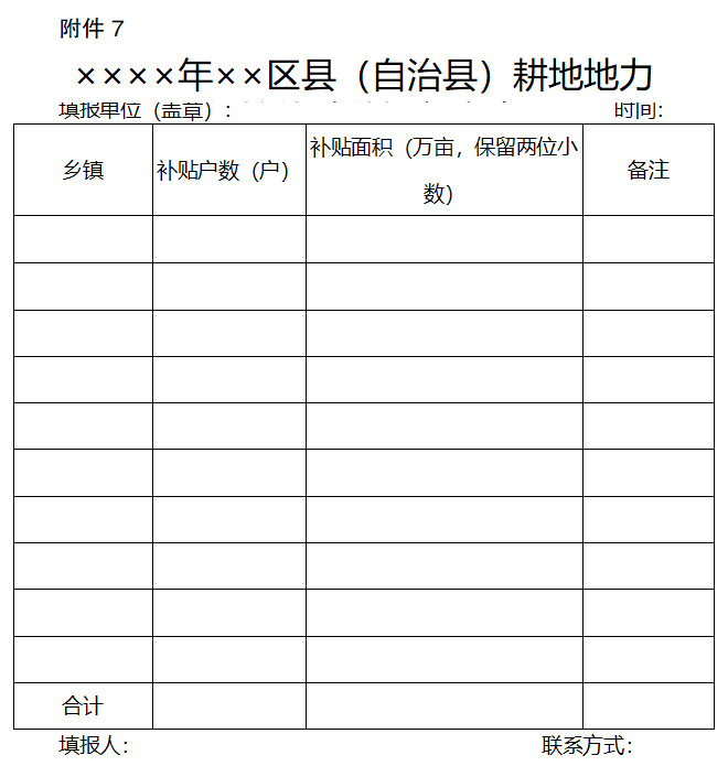 7.××××年××区县(自治县)耕地地力保护补贴数据备 案表