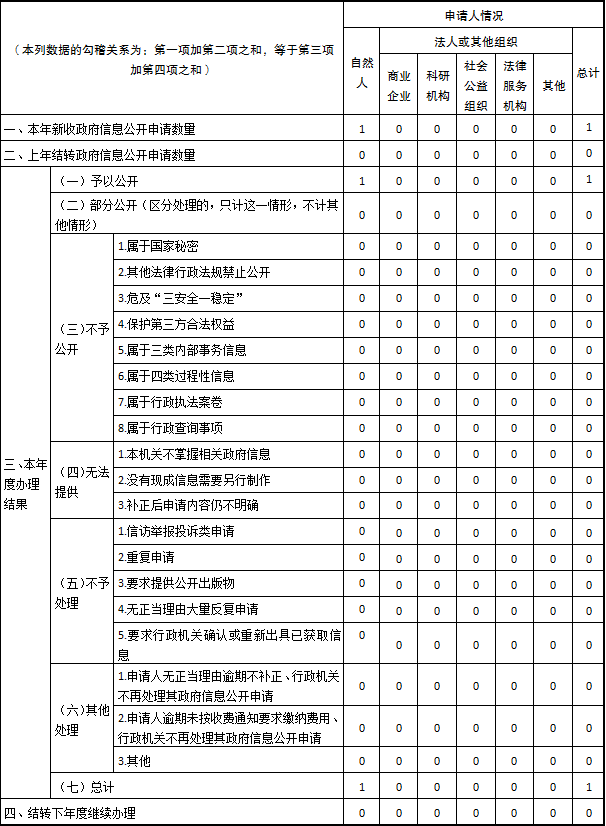 三、收到和处理政府信息公开申请情况