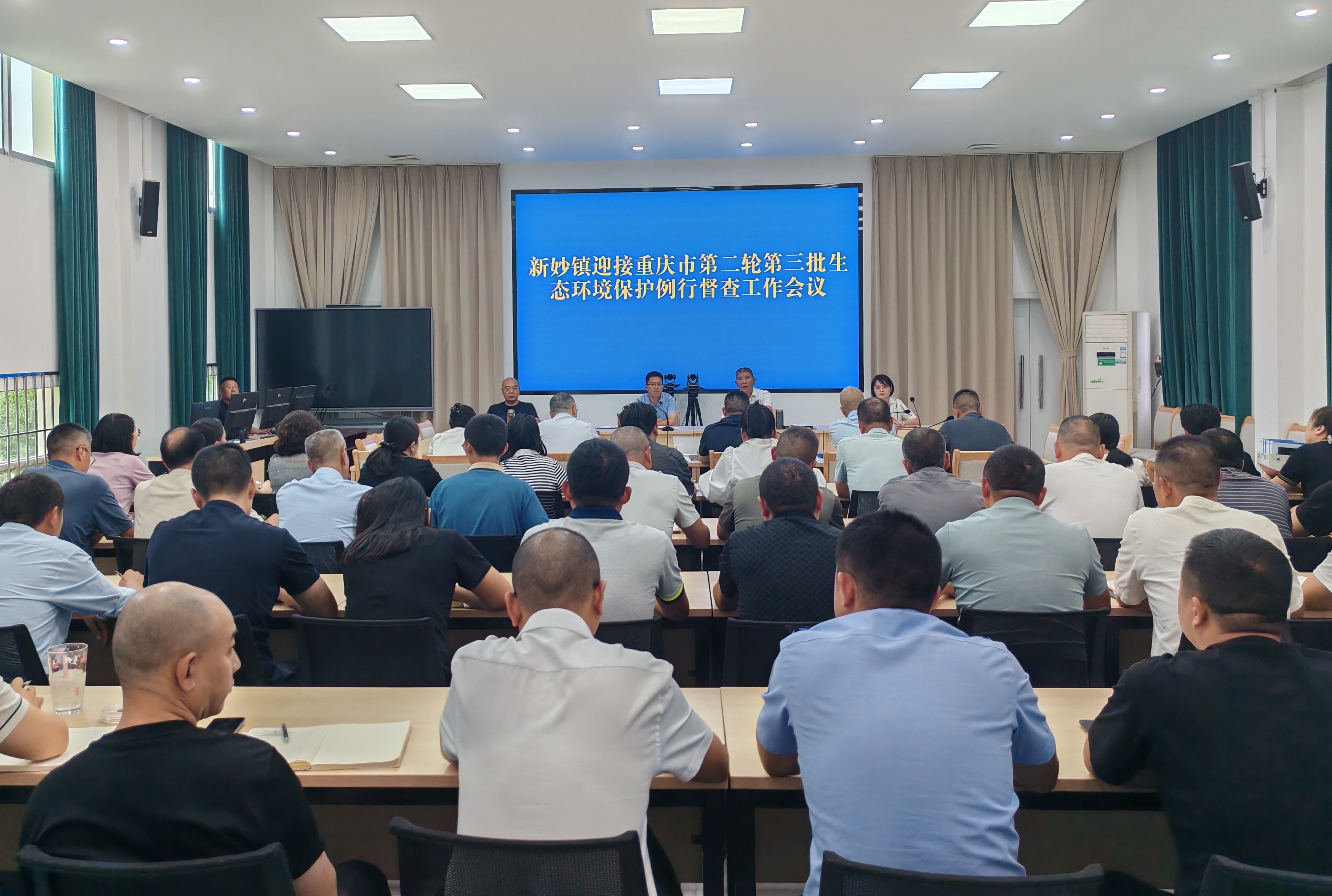 为切实做好新妙镇生态环境保护工作,进一步提升全镇生态环境保护水平,10月9日上午,新妙镇在政府二楼大会议室召开迎接重庆市第二轮第三批生态环境保护例行督察工作会议。镇党委书记陈松出席会议并讲话,党委副书记、镇长杨小平主持会议并作工作强调,全体班子成员、中层干部、各村(社区)支部书记、镇辖部门负责人参加会议。