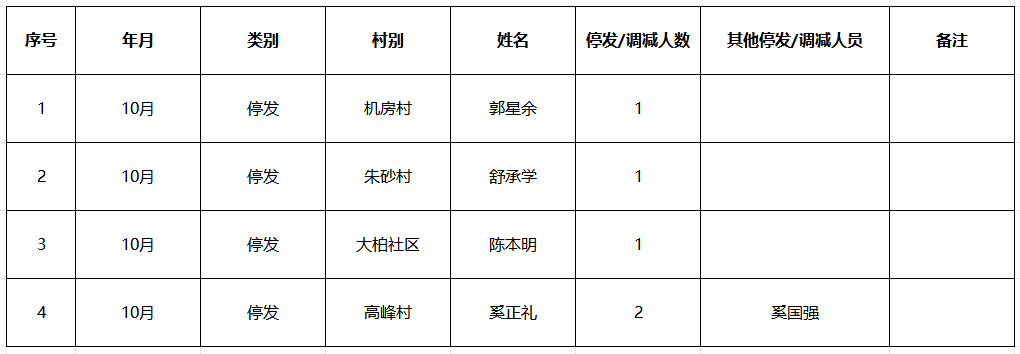 涪陵区义和街道2025年10月城乡低保调减、停发人员名单
