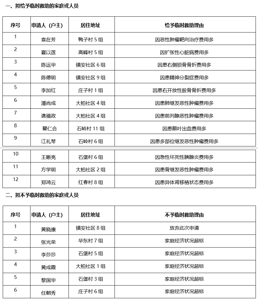涪陵区义和街道2025年12月临时救助审核结果