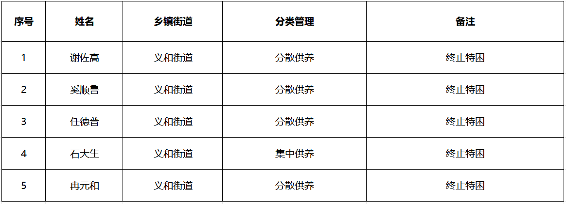 涪陵区义和街道2026年1月特困人员新增、注销公示