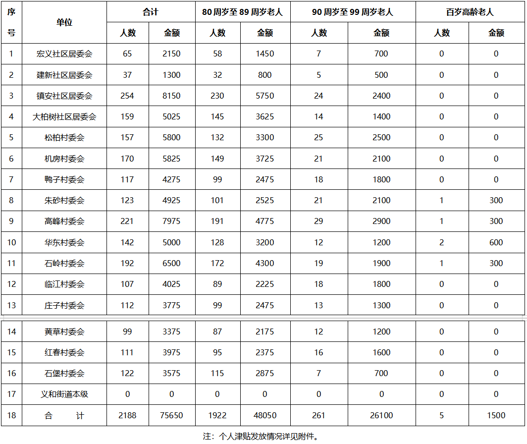 涪陵区义和街道2025年11月高龄津贴发放情况