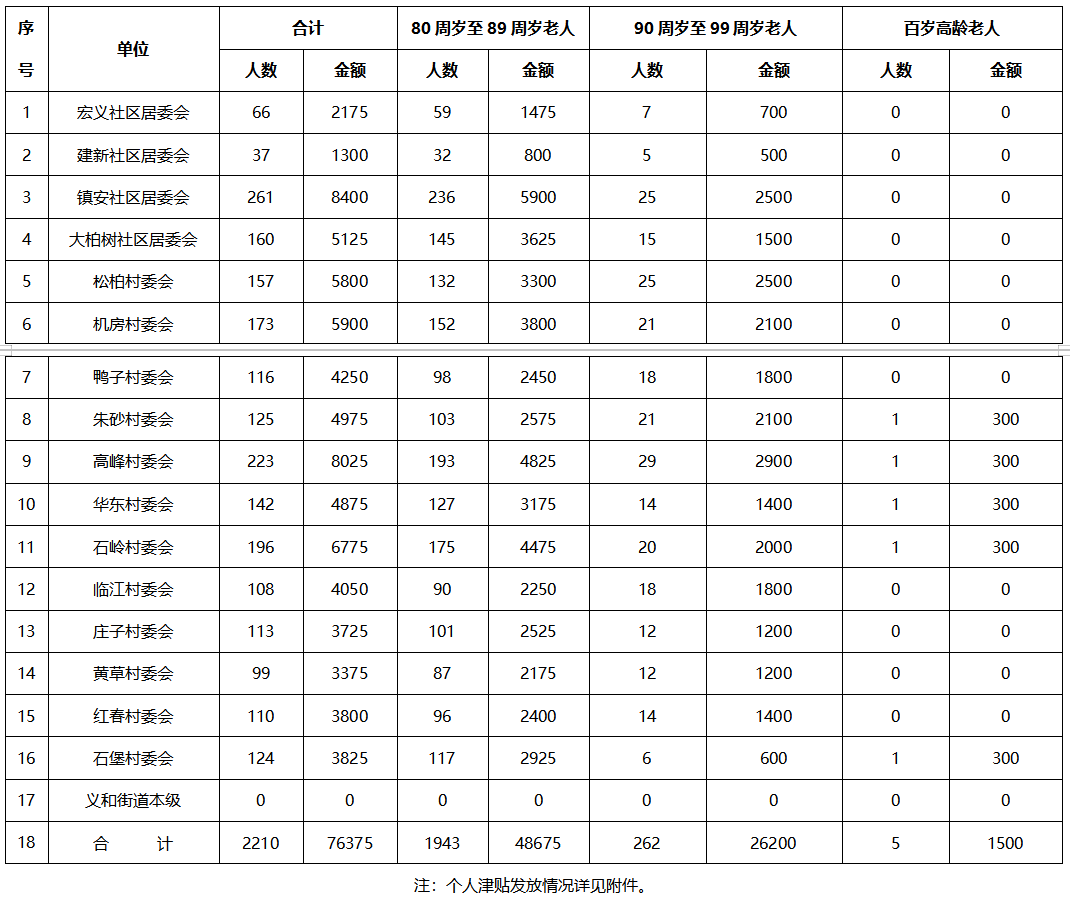 涪陵区义和街道2025年12月高龄津贴发放情况